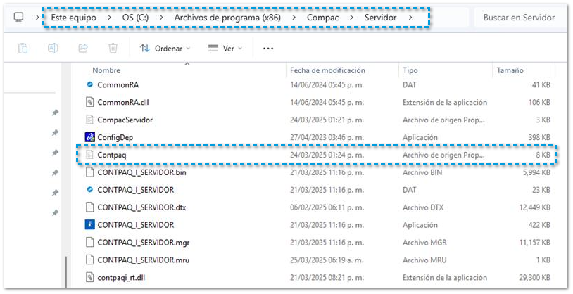 Edita el archivo Contpaq.properties ubicado en la siguiente ruta: C:\Program Files (x86)\Compac\Servidor