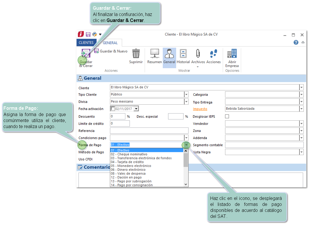 Importante: La Forma de Pago ahora es lo que antes se conocía como Método de Pago.