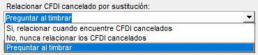 El módulo para Relacionar CFDI aparecerá únicamente si en la configuración de la empresa el campo “Relacionar CFDI cancelado por sustitución” tiene asignada la opción “Preguntar al timbrar”.