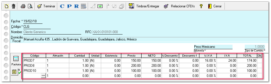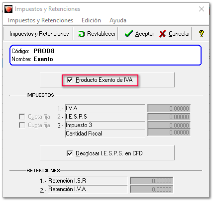 Al capturar un documento los productos que sean exentos o no objetos de IVA, no se calculará dicho impuesto.