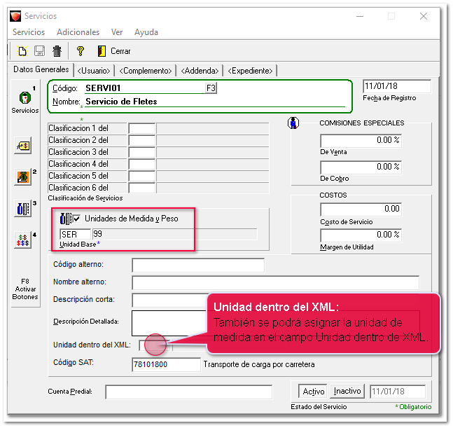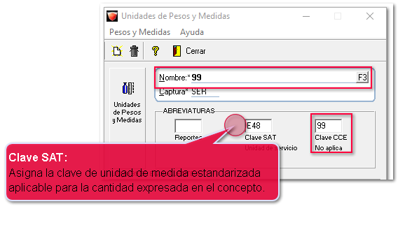 Configurar la unidad de servicio con el Nombre "99" y asignarle la Clave CCE99-Servicio.