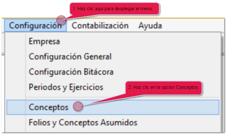 Ingresa al menu Configuración y posteriormente al submenu Conceptos