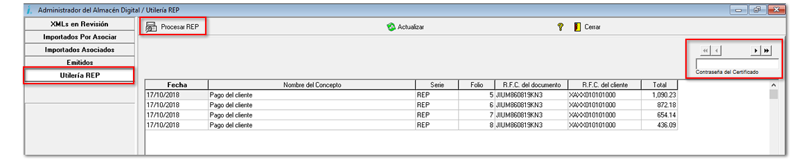 La Utilería REP cancela y vuelve a timbrar Recibos Electrónicos de Pago (REP) que contengan un RFC del receptor diferente al registrado en el catálogo de clientes.