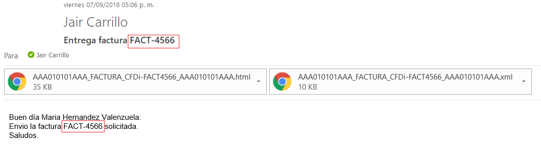 ![]() Al enviar un documento por correo mediante CONTPAQi® Comercial Pro / Start se reflejará de la siguiente forma.