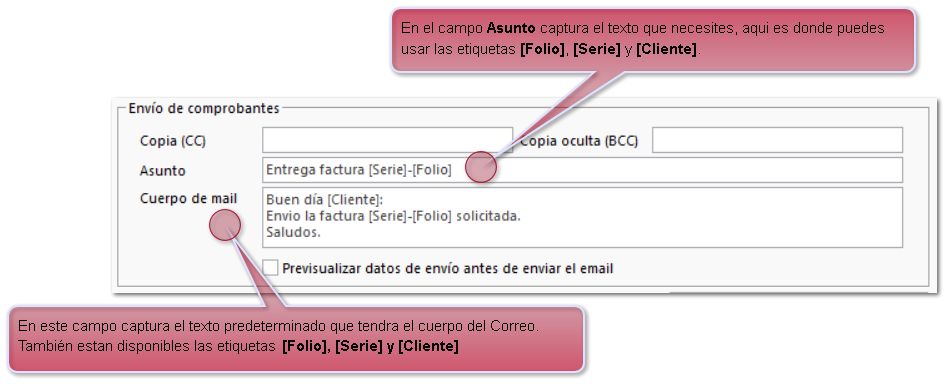 Etiquetas [Serie] y [Folio] para asunto y cuerpo de correo.C845Beneficio