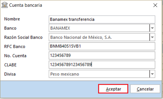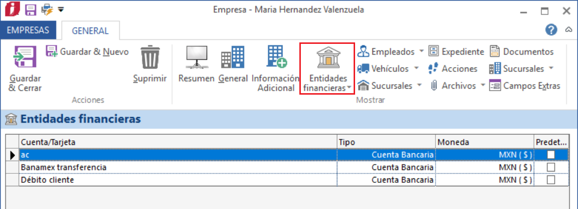 ![]() Aquí tambien podrás editar, agregar o eliminar las cuentas bancarias del cliente.