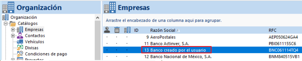 ![]() Revisa las cuentas bancarias desde la empresa del cliente.