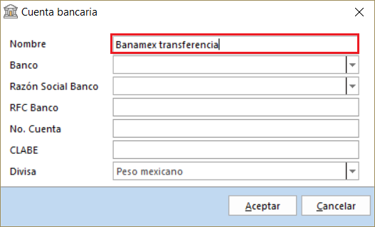 ![]() Define el nombre de la cuenta bancaria para identificarla en la captura de los documentos.