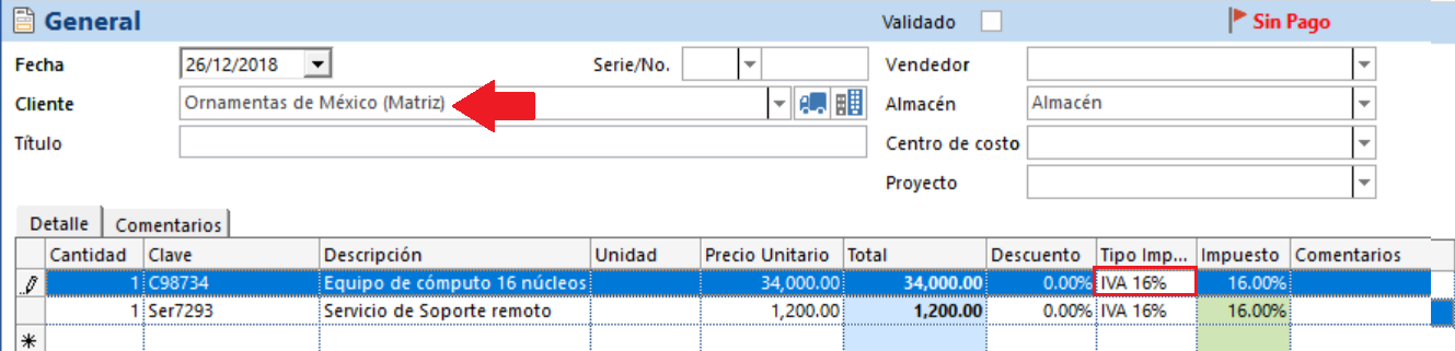 De esta forma al crear un Producto, servicio o capturar un documento, ya se asumirá la tasa de IVA al 16%. Sin Importar que cliente o producto se seleccione.