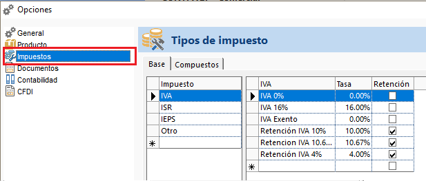 Configuración de Impuestos Compuestos