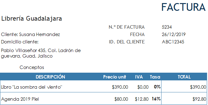 En una librería se facturan libros con tasa 0% y agendas con tasa al 16%.