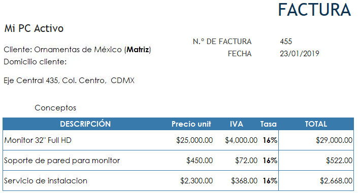Se factura equipo de computo y servicios a cliente con ubicación en CDMX al 16%, ocasionalmente se facturan productos a sucursal Tijuana al 8% y servicios al 16%