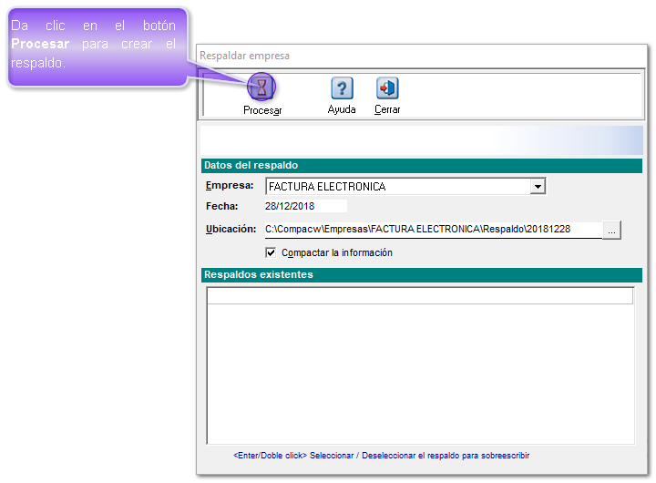 Antes de realizar esta configuración recuerda realizar un respaldo de la empresa desde el menú Empresas / Respaldar Empresa.