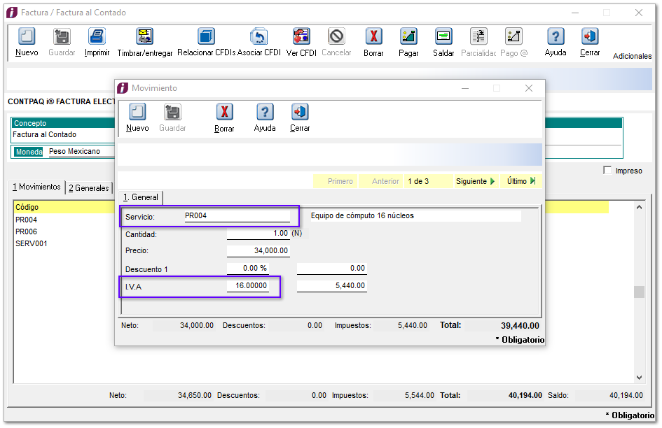 En el siguiente ejemplo; se emitirá la factura con productos y servicios a una tasa de IVA al 16%.
