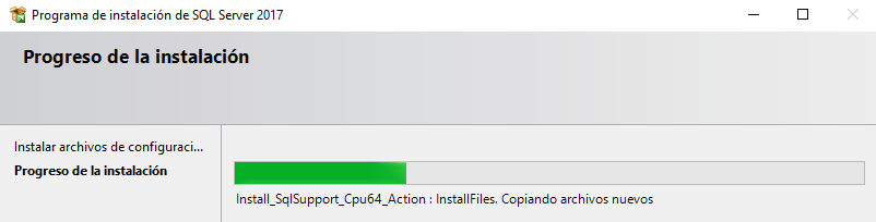 Verifica que termine la instalación y confirma que SQL Server quede instalado correctamente.