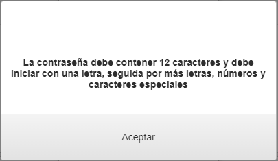 Si la contraseña no cumple con estas especificaciones, se mostrará el siguiente mensaje: