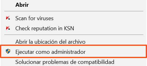 Haz clic derecho sobre el ícono y selecciona la opción Ejecutar como Administrador:
