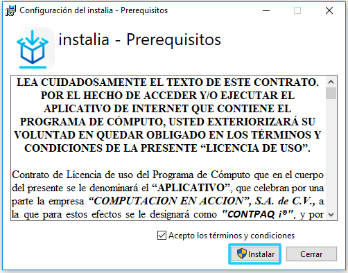 Acepta los términos y condiciones, y haz clic en el botón Instalar.