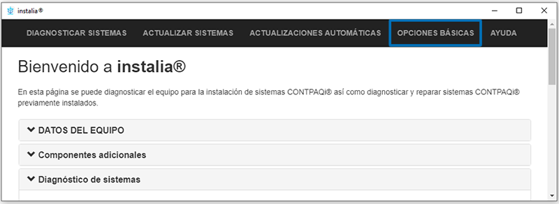 Después de unos segundos se mostrará la interfaz principal de Opciones Básicas: