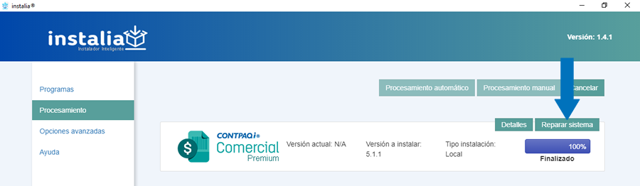 También dentro de esta opción de Procesamiento podrás revisar si hubo Detalles en la instalación.