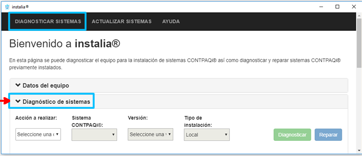 Estando dentro del menú DIAGNOSTICAR SISTEMAS, selecciona la opción Diagnóstico de sistemas.