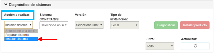 En el campo "Acción a realizar" elige la opción Instalar sistema.