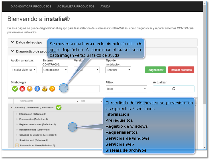 Para lograr un proceso de instalación fácil y completo, instalia® realiza un diagnóstico previo para verificar que los requerimientos Microsoft® SQL Server® y NET Framework estén instalados en el equipo.