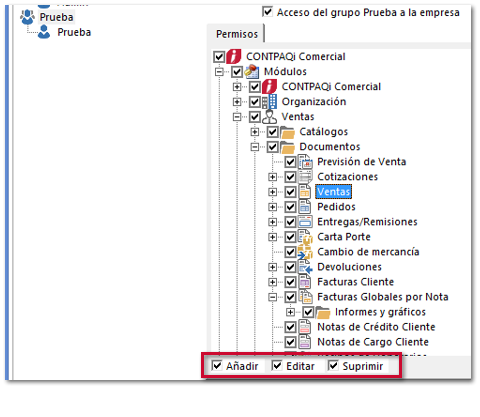 dentro de los grupos y usuarios al seleccionar los distintos Conceptos (Ej. Ventas).