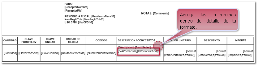 Etiquetas (IEPSPorPartida e IVAPorPartida) agregadas al formato:
