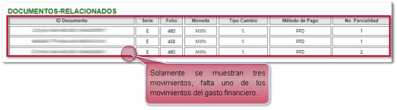 Anteriormente, no se mostraban todos los movimientos de los gastos financieros, aún cuando si se incluían dentro del XML.