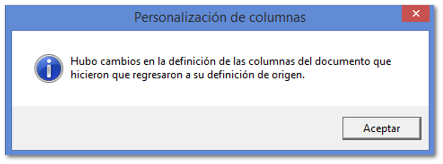 Después de realizar esta configuración, al abrir o crear uno nuevo documento se mostrará el siguiente mensaje que indica que se realizaron cambios en las columnas del documento.