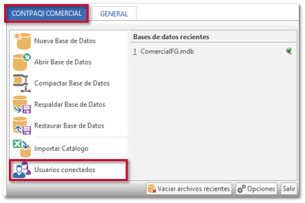 Ingresa a la pestaña CONTPAQI COMERCIAL, y haz clic en la nueva opción Usuarios conectados.
