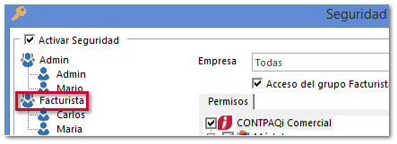 Se mostrará la ventana de Seguridad, identifica el grupo de usuarios al que deseas asignarle el permiso para ingresar a la opción Usuarios conectados y selecciónalo.