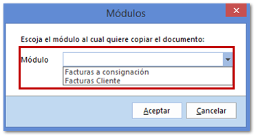Anteriormente al Copiar a Pedido un documento de Cotización, se mostraba la ventana Módulos con las opciones de Facturas a Consignación y Facturas Clientes.