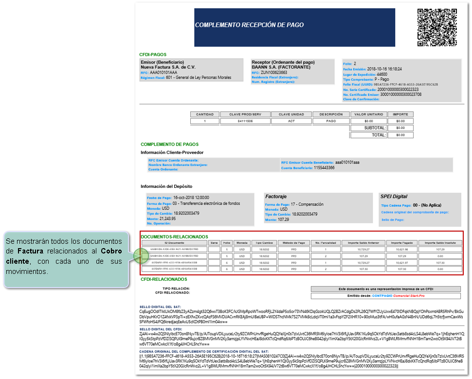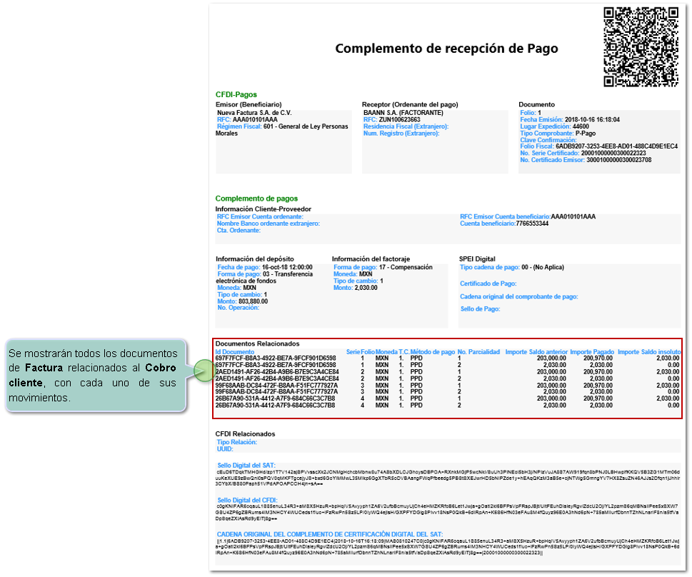 Se adecúan los formatos Modelo_CFDIComplementoRecepcionPagosFactoraje.html y Modelo_CRP33_Factoraje.html de Cobro cliente, para mostrar las información de los documentos (con sus movimientos) relacionados cuando estos provengan de un REP de Factoraje.