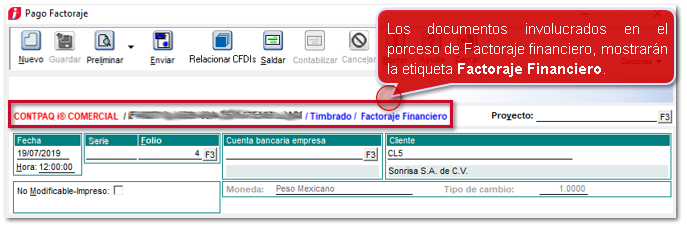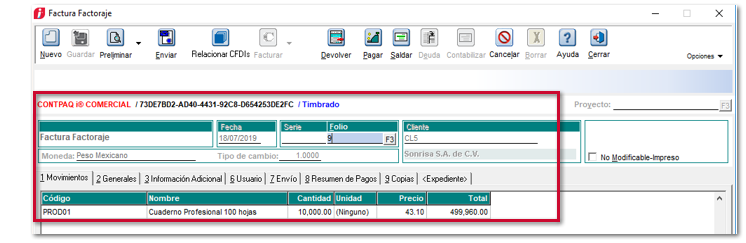 Para poder realizar este proceso en el sistema CONTPAQi® Comercial Premium, debes dar de alta tu cliente como Cliente/Proveedor y habilitar la opción Factoraje financiero.