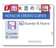 Haz clic en el botón Guardar y posteriormente timbra la nota de crédito.
