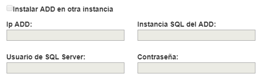 Si ya tienes un sistema CONTPAQi® instalado en tu equipo, al instalar otro sistema, en los parámetros de Configuración, la sección Instalar ADD en otra instancia estará deshabilitada; se tomará para el ADD la instancia a la que está apuntando (la configurada en la instalación de tu primer sistema CONTPAQi®) y esta información no se podrá modificar.