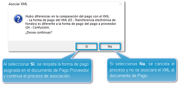 FormaDePagoP del XML vs la forma de pago del Pago Proveedor, si esta es diferente se mostrará el siguiente mensaje: