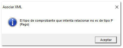Validará que el XML que se intenta relacionar sea de tipo Pago (TipoDeComprobante= P).
