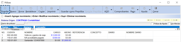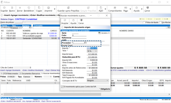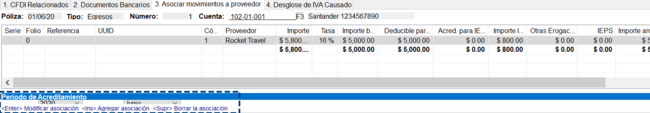 Observa que ya tiene el movimiento asignado al proveedor y desde esta ventana, podrás asignar el periodo de acreditamiento.
