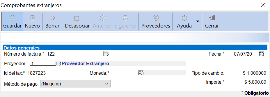 Un ejemplo es contabilizar un comprobante extranjero y registrar al proveedor.