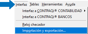 1. Hacemos clic en el menú Interfaz y elegimos la opción Importación y Exportación: