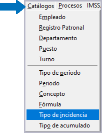 Puedes consultarla desde el menú Catálogos y la opción Tipo de incidencia.