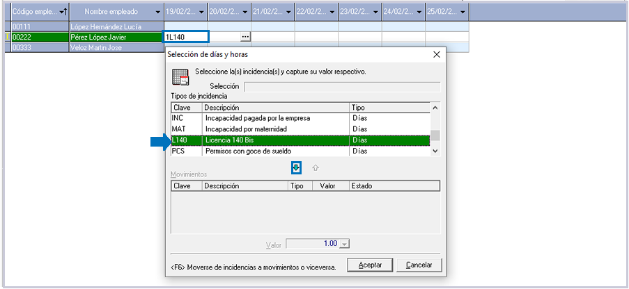 Podrás registrar las incidencias para la Licencia 140 Bis desde la prenómina de días y horas.