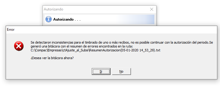 Al realizar la autorización del periodo, se realizarán validaciones para evitar errores de timbrado.