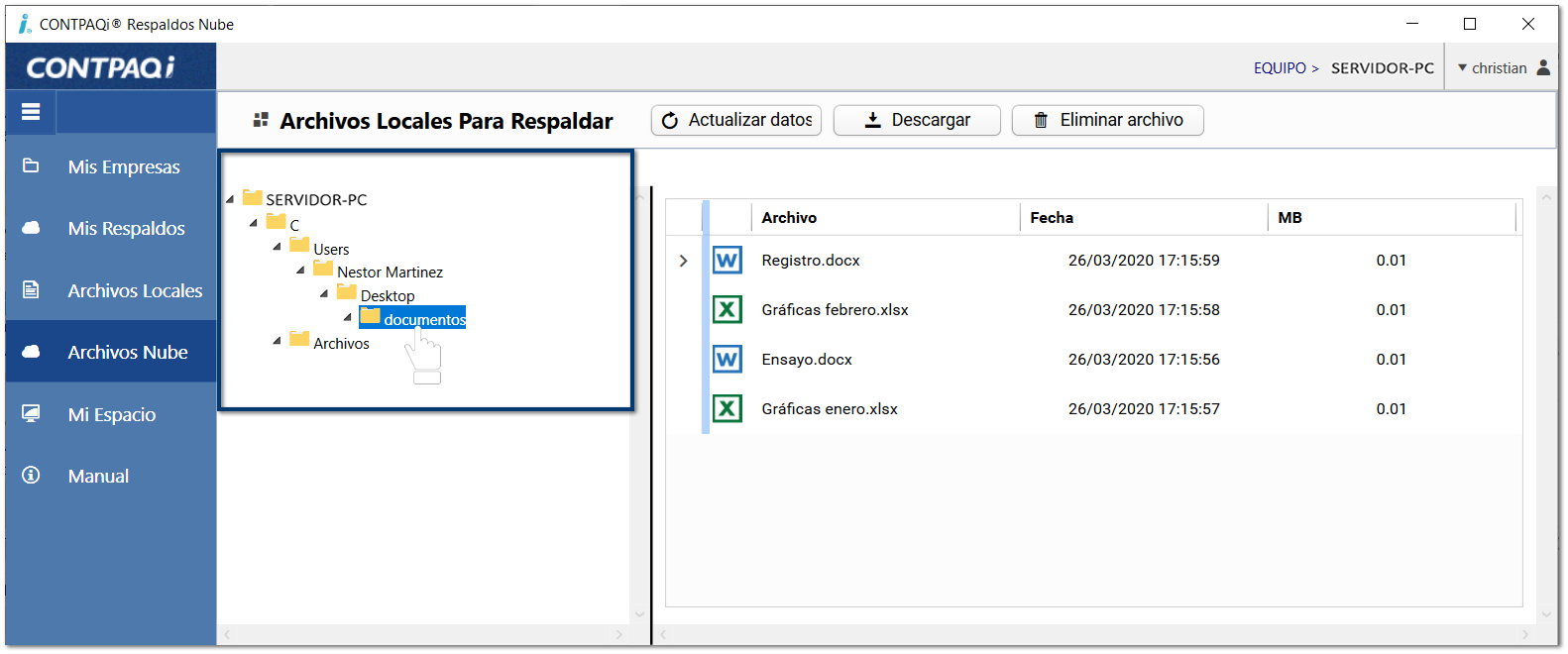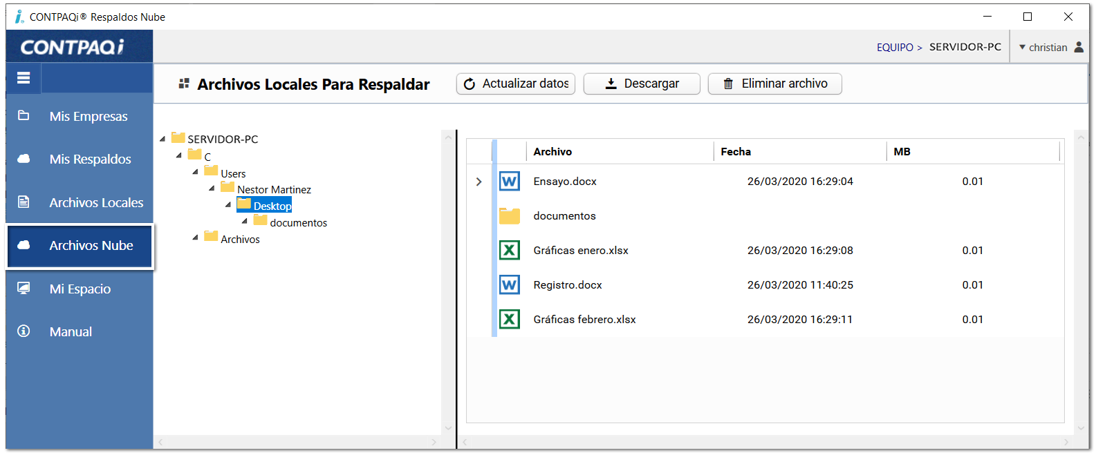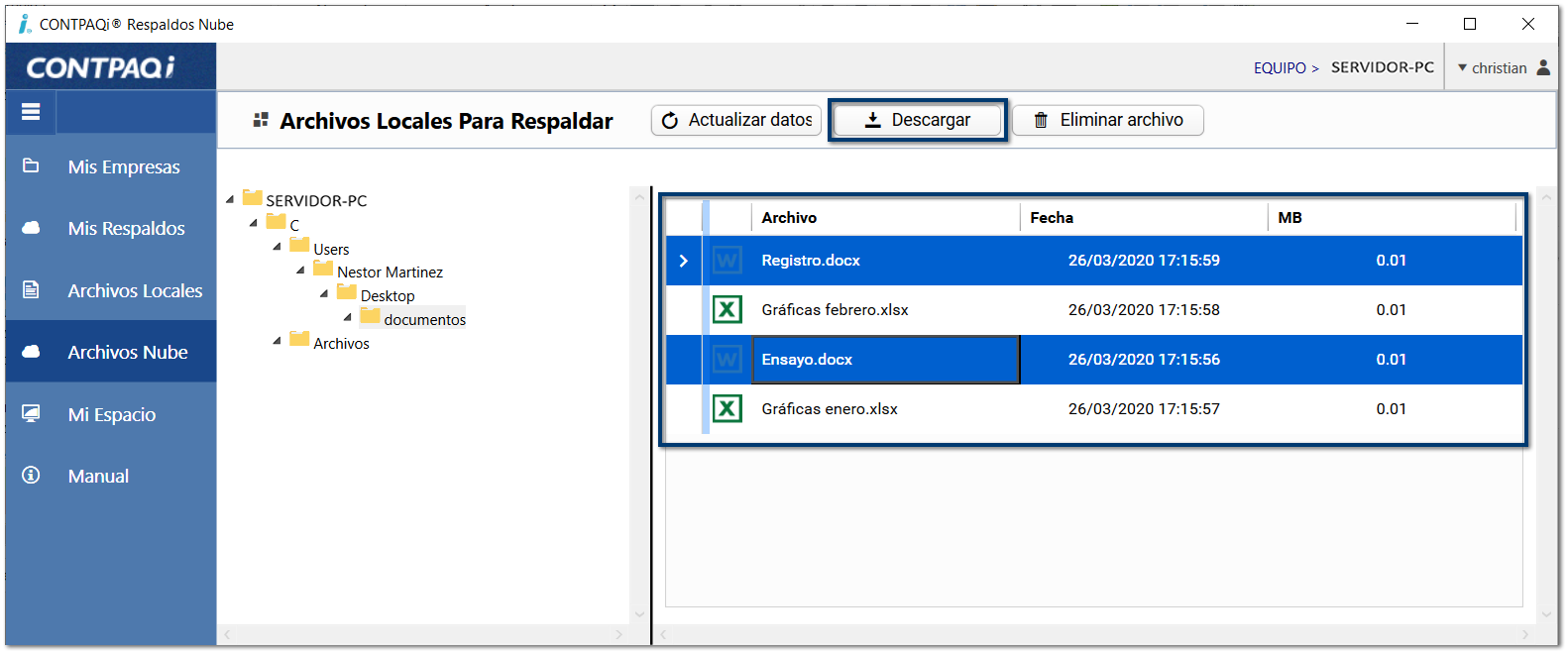 Selecciona el o los archivos a descargar y haz clic en el botón Descargar.