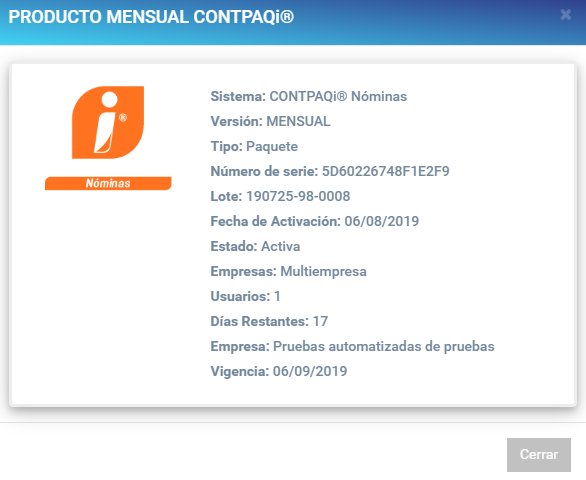 La opción Ver dentro del listado, nos mostrará la información a detalle de la licencia de los sistemas CONTPAQi® adquiridos.