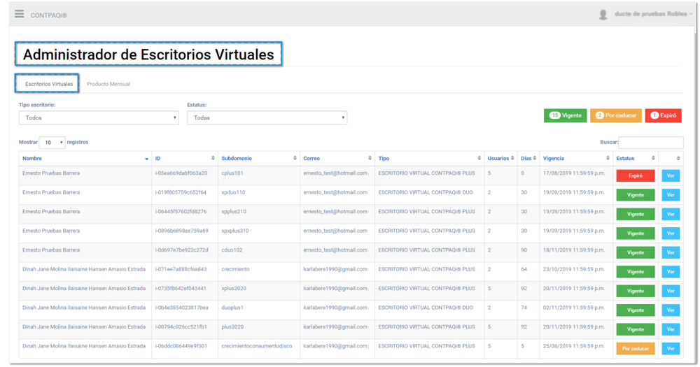 Y con las etiquetas añadidas, que te informarán a detalle cuantos escritorios virtuales estan vigentes, por caducar o expirados.