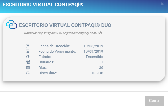 Esta opción únicamente se habilitará para los distribuidores que hayan vendido un Escritorio Virtual.
